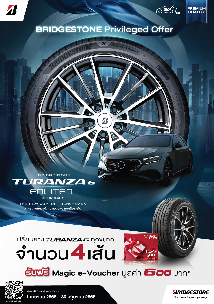 Simply replace 4 tires of the eligible models and sizes to receive a special discount of up to 2,000 THB*.
