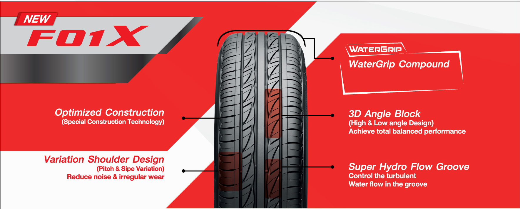 FIRESTONE F01X - always dependable tire suits for daily usage with WaterGrip technology that enhance better wet braking and driving performance on both dry and wet condition