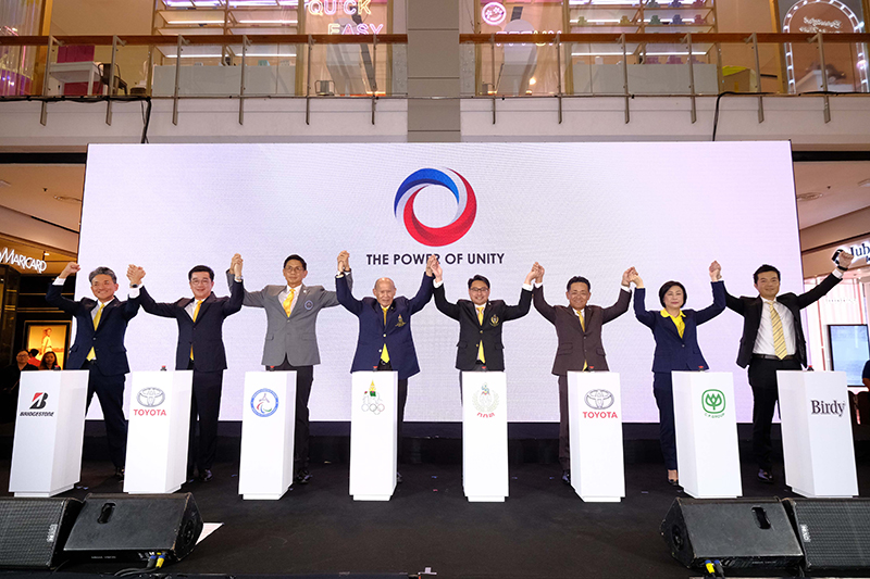 [กรุงเทพฯ] (5 กรกฎาคม 2562) – บริษัท ไทยบริดจสโตน จำกัด นำโดย มร. ฮิเดยูกิ ทาเคดะ กรรมการผู้จัดการ (ซ้ายสุด) ผนึกกำลังร่วมงานแถลงข่าวเปิดตัวโครงการ “The Power Of Unity รวมพลังไทยเพื่อฮีโร่ไทย” ผนึกความร่วมมือคณะกรรมการโอลิมปิก, พาราลิมปิกแห่งประเทศ และการกีฬาแห่งประเทศไทย ร่วมกับพันธมิตรบริษัทเอกชน อาทิ โตโยต้า มอเตอร์ ประเทศไทย, เครือเจริญโภคภัณฑ์, สิงห์ คอร์เปอเรชั่น และไทยบริดจสโตน เพื่อสนับสนุนทัพนักกีฬาทีมชาติไทยคว้าชัยในการแข่งขันกีฬาโอลิมปิกเกมส์ และพาราลิมปิกเกมส์ “โตเกียว 2020” ณ ลานอีเด็น ศูนย์การค้าเซ็นทรัลเวิลด์ เมื่อวันที่ 2 กรกฎาคม 2562 ที่ผ่านมา โดยวัตถุประสงค์โครงการเพื่อสนับสนุนวงการกีฬาไทยอย่างรอบด้านในทุกมิติ โดยบริดจสโตนเชื่อมั่นในทัพนักกีฬาไทย และพร้อมสนับสนุนคนไทยทุกคนในการไล่ล่าความฝันให้เป็นจริง