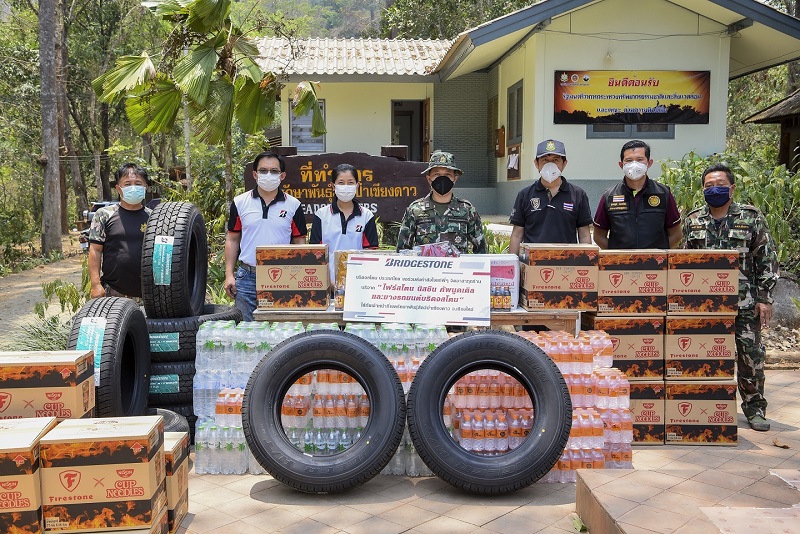[กรุงเทพฯ] (24 เมษายน 2563) บริดจสโตน ประเทศไทย โดยคุณธนารักษ์ กาญจนขันธกุล ผู้จัดการฝ่ายสื่อสารองค์กรและสร้างสรรค์ผลลัพธ์ที่ดีต่อสังคม บริษัท ไทยบริดจสโตน จำกัด พร้อมด้วยร้านค้าส่งยางรถยนต์บริดจสโตน หจก. สหสายเหนือหล่อยาง จ.ลำพูน โดยคุณจิรัฏฐ์ และคุณนุชขนิษฐ์ ฐิติวัฒนาการ, และผู้แทนจำหน่ายศูนย์บริการยางรถบรรทุกและรถโดยสารบริดจสโตน สายเหนือการยาง ดอนจั่น จ.เชียงใหม่ และศูนย์บริการ ค็อกพิท นพรัตน์การยาง จ.เชียงใหม่ ที่ได้เล็งเห็นถึงความสำคัญของสถานการณ์วิกฤตไฟป่า ณ จ.เชียงใหม่ ในตอนนี้ รวมพลังส่งต่อความช่วยเหลือโดยส่งมอบสิ่งของที่จำเป็น ได้แก่ บะหมี่กึ่งสำเร็จรูปไฟร์สโตน นิสชิน คัพนูดเดิล จำนวน 5,000 ถ้วย, น้ำดื่ม, เครื่องดื่มบำรุงกำลัง และผลิตภัณฑ์ยางรถยนต์ Bridgestone Dueler จำนวน 2 ชุด ให้แก่เจ้าหน้าที่เขตรักษาพันธุ์สัตว์ป่าเชียงดาว จ.เชียงใหม่ และกรมอุทยานแห่งชาติ สัตว์ป่า และพันธุ์พืช กรุงเทพฯ เพื่อนำไปสนับสนุนการปฏิบัติงานแก่หน่วยงานในสังกัด ขอเป็นกำลังใจให้เจ้าหน้าที่ ที่ได้ทุ่มเทกำลังกาย กำลังใจ ทำงานอย่างหนักและเสียสละในการเข้าไปปฏิบัติหน้าที่ในพื้นที่ไฟป่าซึ่งมีความเสี่ยงสูง ด้วยความตั้งใจตลอดช่วงเวลาที่ผ่านมา
