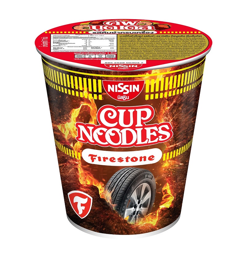 [กรุงเทพฯ] (1 เมษายน 2563) ผลิตภัณฑ์ยางรถยนต์ไฟร์สโตน โดย บริษัท บริดจสโตนเซลส์ (ประเทศไทย) จำกัด ร่วมกับ บริษัท นิสชิน ฟูดส์ (ไทยแลนด์) จำกัด ขอผสานความแตกต่างที่ลงตัวของสองผลิตภัณฑ์ที่โดดเด่นเรื่องคุณภาพ ด้วยการออกโปรดักซ์สุดพิเศษ “ไฟร์สโตน คัพนูดเดิล ลิมิเตท อิดิชั่น” นิสชิน คัพนูเดิล รสชาติร้อนแรง ด้วยการดีไซน์แพคเกจจิ้งรูปแบบพิเศษ ซึ่งไม่ได้มีวางจำหน่ายทั่วไป แต่มีให้เฉพาะลูกค้าและผู้ใช้บริการ ณ ศูนย์บริการรถยนต์ค็อกพิท, เอ.ซี.ที ทุกสาขาทั่วประเทศไทย และผู้แทนจำหน่ายเท่านั้น เริ่มตั้งแต่วันที่ 4 เมษายน 2563 เป็นต้นไป และจนกว่าสินค้าจะหมด