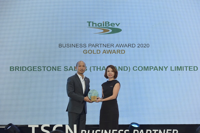 [กรุงเทพฯ] (21 ตุลาคม 2563) – เมื่อเร็วๆนี้ บริษัท บริดจสโตนเซลส์ (ประเทศไทย) จำกัด นำโดย (ขวา) คุณนิสิตา ศิรธรานนท์ ผู้จัดการฝ่ายการตลาดผลิตภัณฑ์ยางรถยนต์เพื่อการพาณิชย์ เป็นตัวแทนรับรางวัล Business Partner Award 2020 (Gold Award) ติดต่อกันเป็นปีที่ 2 จากงาน ThaiBev Business Partner Conference 2020 โดย (ซ้าย) คุณโฆษิต สุขสิงห์ รองกรรมการผู้อำนวยการใหญ่ ผู้บริหารสูงสุด สายธุรกิจเครื่องดื่มไม่มีแอลกอฮอล์ บริษัท ไทยเบฟเวอเรจ จำกัด (มหาชน) ณ สามย่านมิตรทาวน์ กรุงเทพฯ เมื่อวันที่ 3 ตุลาคม 2563 ที่ผ่านมา