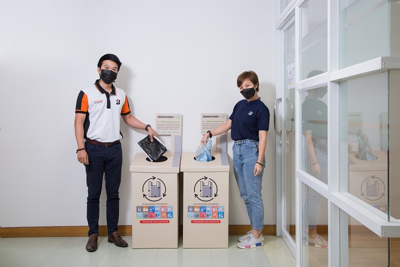 · พนักงานบริดจสโตน ประเทศไทย ร่วมมือกันคัดแยกขยะรีไซเคิลประเภท “พลาสติกใช้ครั้งเดียวแล้วทิ้ง” ส่งมอบให้โครงการ “วน” นำไปผลิตใหม่เป็นถุงสำหรับใส่ขยะ และนำกลับมาใช้ในองค์กรอีกครั้ง
