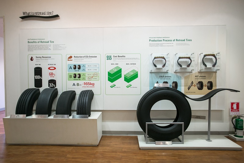 ยางหล่อดอกจาก “ศูนย์ยางหล่อดอก บริดจสโตน บันแดก” เป็นผลิตภัณฑ์ที่เกิดจากการใช้เทคโนโลยีขั้นสูงของบริดจสโตนและนำกรรมวิธีของบันแดกซึ่งเป็นโรงงานที่มีชื่อเสียงระดับแนวหน้าในธุรกิจยางหล่อดอก PCT คุณภาพสูงของบริดจสโตน บันแดก ประเทศไทย ในการเปลี่ยน “หน้ายางใหม่” เพื่อทำให้ “โครงยาง” เดิมนั้นนำกลับมาใช้งานได้อีก จึงช่วยลดต้นทุนค่าขนส่งต่อกิโลเมตรได้อย่างมีนัยยะสำคัญ นอกจากนี้ยางหล่อดอกยังเป็นมิตรต่อสิ่งแวดล้อมเพราะใช้ทรัพยากรน้อยกว่าการผลิตยางใหม่แบบทั้งหมด ดังนั้นด้วยการผลิตภายใต้เทคโนโลยีอันล้ำสมัยและการควบคุมคุณภาพอย่างถี่ถ้วน ทำให้ได้รับความนิยมจากลูกค้าจำนวนมากในประเทศแถบเอเชีย และเป็นหนึ่งในสินค้าคุณภาพชั้นนำภายใต้ B-Solution โปรแกรมการบริหารจัดการยางรถบรรทุกและรถโดยสารแบบมืออาชีพ ซึ่งเป็นบริการพิเศษเพื่อผู้ประกอบการรถบรรทุกและรถโดยสารโดยเฉพาะ มีจุดเด่นเรื่องความสะดวก ความปลอดภัย และการช่วยลดต้นทุนในการดำเนินงานให้กับผู้ประกอบการ ตอบโจทย์ความคุ้มค่าสูงสุดแก่ลูกค้า เพื่อส่งมอบโซลูชั่นและประสบการณ์ที่สมบูรณ์แบบอย่างยั่งยืนแท้จริงในการใช้ยางจากบริดจสโตนซึ่งจะช่วยส่งเสริมความเชื่อมั่นและการเติบโตอย่างมีศักยภาพให้ผู้ประกอบการในธุรกิจขนส่งและโลจิสติกส์
