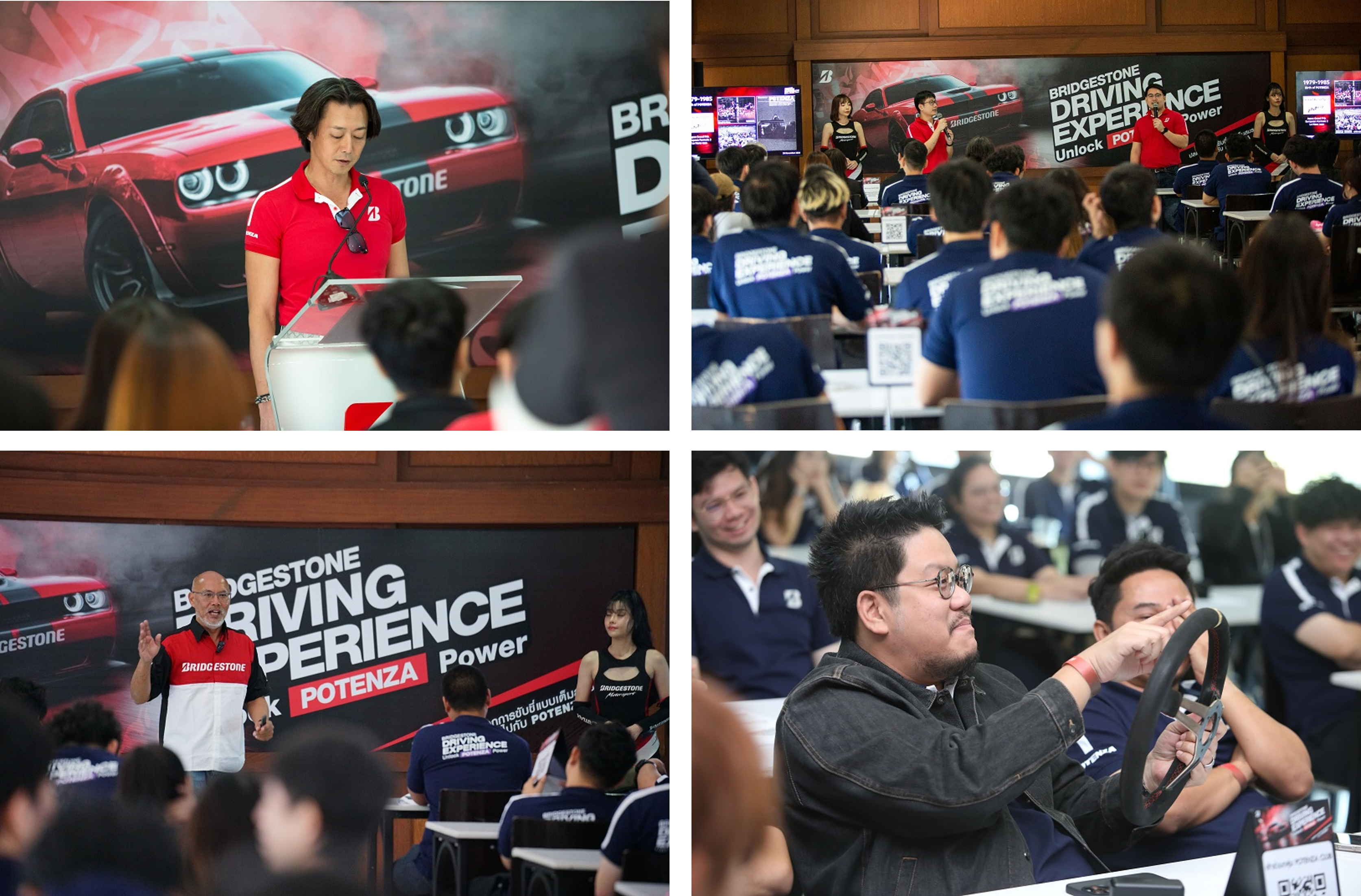 คุณโชทาโร่ คิตะมุระ ผู้อำนวยการสายงานธุรกิจยางรถยนต์นั่งและรถบรรทุกขนาดเล็ก บริษัท บริดจสโตนเซลส์ (ประเทศไทย) จำกัด กล่าวว่า “BRIDGESTONE DRIVING EXPERIENCE: Unlock POTENZA Power จัดขึ้นเป็นปีที่ 2 ในประเทศไทย ถือเป็นการเปิดประสบการณ์การขับขี่สไตล์สปอร์ตขั้นสุดให้ลูกค้าได้สัมผัสสมรรถนะอย่างเต็มพิกัดของยาง BRIDGESTONE POTENZA Adrenalin RE004 และ BRIDGESTONE POTENZA SPORT บนสนามแข่งจริง พร้อมกันนี้ลูกค้าทุกท่านยังได้รับความรู้และทักษะการขับขี่สไตล์สปอร์ตจากนักขับและวิทยากรมืออาชีพในวงการรถยนต์เพื่อเติมเต็มการขับขี่ในชีวิตประจำวันให้สนุก มั่นใจ และปลอดภัยยิ่งขึ้นไม่ว่าจะเป็นการควบคุมพวงมาลัยและการทรงตัวของรถในขณะขับขี่บนเส้นทางคดเคี้ยว(Slalom) และการขับขี่ในทางโค้ง (Cornering) เป็นต้น กิจกรรมเอ็กซ์คลูซีฟในปีนี้ลูกค้ายังได้พบกับรถสปอร์ตซีดานในตำนานอย่าง Mitsubishi Lancer Evolution 8 MR ซึ่งอยู่เบื้องหลังการทดสอบประสิทธิภาพยางในตระกูล POTENZA หลากหลายรุ่นของบริดจสโตนตั้งแต่ปี พ.ศ. 2548 มาร่วมขับเพื่อโชว์สมรรถนะของยางสปอร์ตภายในงานอีกด้วย ในโอกาสนี้ ผมขอขอบคุณลูกค้าทุกท่านที่ให้เกียรติมาร่วมกิจกรรมและเชื่อมั่นในผลิตภัณฑ์ยางรถยนต์ของบริดจสโตนเสมอมาซึ่งเป็นแรงบันดาลใจให้เราสร้างสรรค์นวัตกรรมโซลูชั่นอย่างต่อเนื่องเพื่อนำเสนอผลิตภัณฑ์ที่ดียิ่งขึ้น และหวังเป็นอย่างยิ่งว่ากิจกรรมนี้จะมอบประสบการณ์สุดประทับใจตลอดจนสร้างความสัมพันธ์ที่ดีให้เกิดขึ้นระหว่างบริดจสโตนและลูกค้าของเรา”