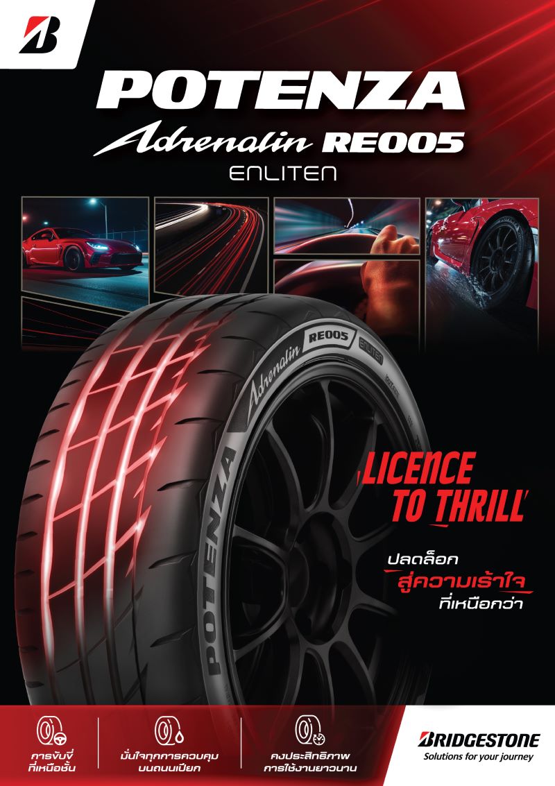 บริดจสโตนปลดล็อกสู่ความเร้าใจที่เหนือกว่า! เปิดตัวยางรถยนต์สปอร์ตพรีเมียม “BRIDGESTONE POTENZA Adrenalin RE005” ยกระดับสมรรถนะเต็มพิกัดสำหรับนักขับสายสปอร์ตตัวจริง