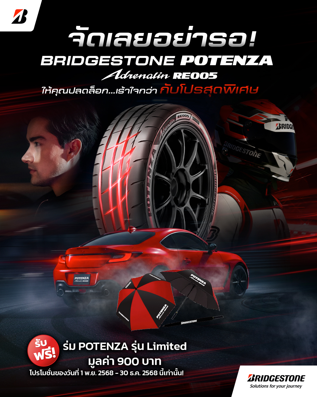 คนจะมันส์…ไม่ควรต้องรอ โปร นี้ก็เช่นกัน! ให้คุณปลดล็อก…ให้เร้าใจกว่า กับโปรสุดพิเศษ รับร่ม POTENZA รุ่น Limited มูลค่า 900 บาท