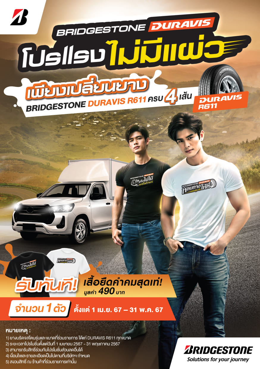 1) ยางบริดจสโตนรุ่นและขนาดที่ร่วมรายการ ได้แก่ DURAVIS R611 ทุกขนาด