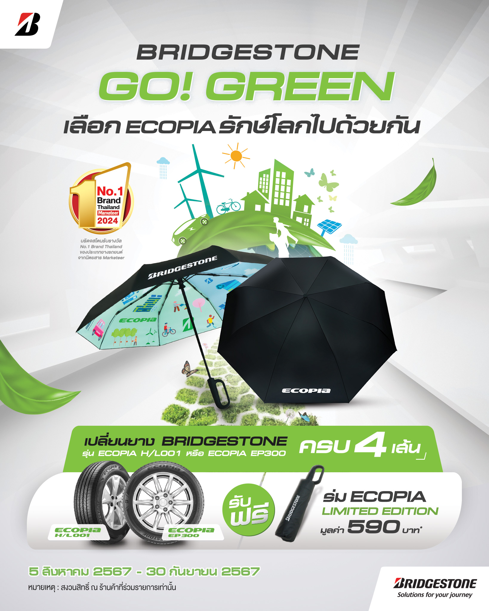 1) ยางบริดจสโตนรุ่นและขนาดที่ร่วมรายการ ได้แก่ ECOPIA EP300 และ ECOPIA H/L001 ทุกขนาด
