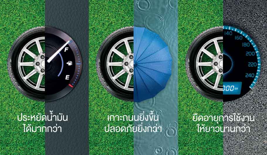 ยาง BRIDGSTONE ECOPIA เป็นยางที่มีความต้านทานการหมุนต่ำ และถูกออกแบบเพื่อช่วยให้รถประหยัดน้ำมันได้มากขึ้น