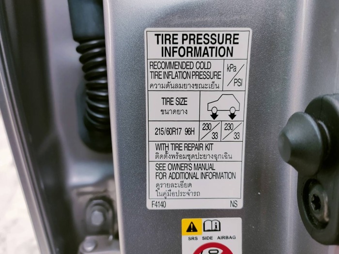 แรงดันลมยาง : 230 kpa (เทียบเท่า 33ps)