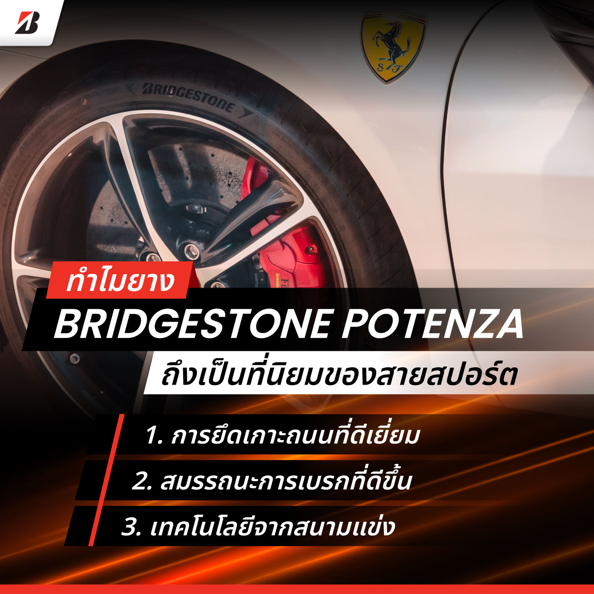 ด้วยคุณสมบัติเหล่านี้ BRIDGESTONE POTENZA จึงเป็นยางสปอร์ตที่ได้รับความนิยมจากผู้ขับขี่ทั่วโลก โดยเฉพาะผู้ที่ต้องการทั้งความสนุกในการขับขี่ และความมั่นใจในทุกเส้นทาง และหากคุณกำลังมองหายางสปอร์ตสมรรถนะสูง ขอให้นึกถึง BRIDGESTONE