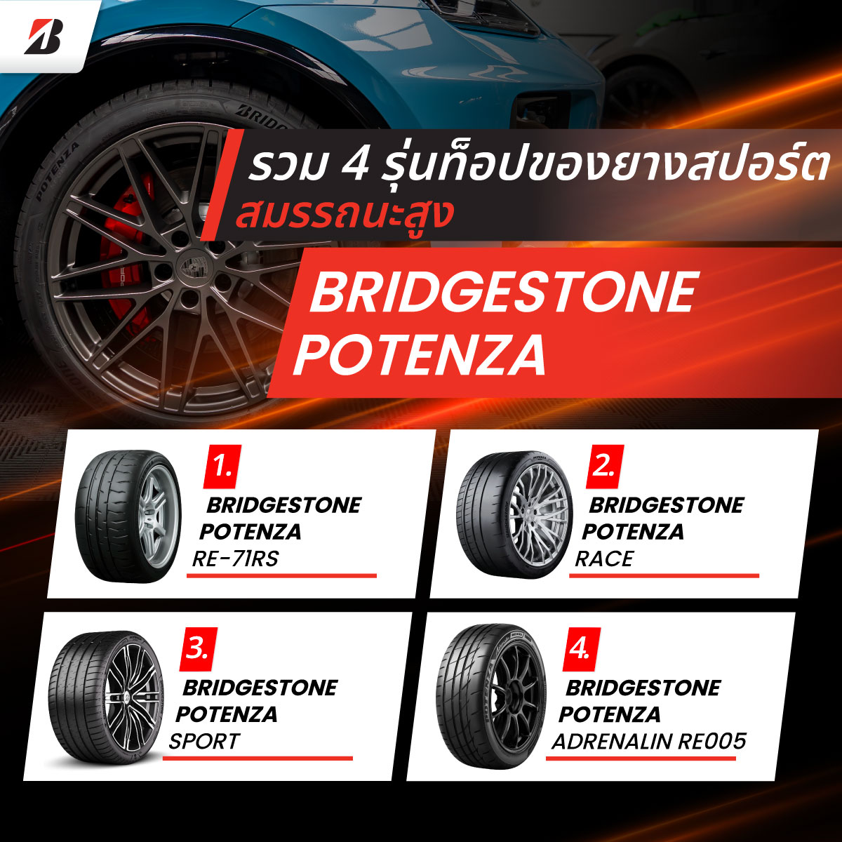 ในบทความนี้ บริดจสโตน ขอแนะนำ 4 รุ่นท็อปของยางสปอร์ต BRIDGESTONE POTENZA ที่ตอบโจทย์ทั้งนักขับสายสปอร์ต และผู้ขับขี่ทั่วไป ที่ต้องการสมรรถนะสูงสุดและความมั่นใจในทุกความเร็ว มาดูกันว่ามีรุ่นไหนน่าสนใจบ้าง